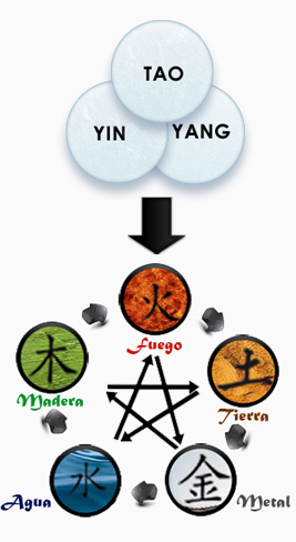 De esos dos en relación, que en realidad a través de la consciencia también son uno en sí mismos, dan origen a los cinco elementos y cada uno de ellos tiene características propias del entorno, pero también de uno mismo. La relación de estos elementos cómo se nutren y se controlan alimenta quien yo soy, mi Tao.